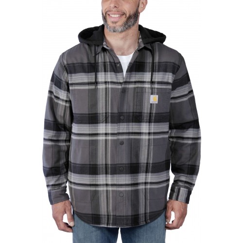 Dra av vädret och ta dig igenom kylan i denna Carhartt-huvjacka för män. Flanell med inbyggd flex ger dig det rörelseomfång du behöver för att klyva ved eller skotta snö. Ett mjukt fleecefoder ger värme. Den avslappnade passformen gör den lätt att lägga på lager eller bära på egen hand.