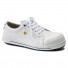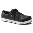Modern skyddssko i sneakerstil med 6-håls snörning och uttagningsbar, anatomiskt formad kork–mikrofiberfotbädd för långvarig komfort. ESD-skydd leder bort statisk elektricitet (upp till 35 MΩ, ej isolerande) och känns igen på den gula runda märkningen – idealisk för arbete inom mikroelektronik och HF-teknik. Halksäker nitrilgummisula (SRC) är olja-/bensinresistent (FO), metallfri och spiktrampskyddad (P) med energiupptag i häl (E). 200 J stålhätta med reptålig tåförstärkning skyddar framfoten. Ovandel i vattentåligt slätt läder (WRU) med antistatisk funktion (A).